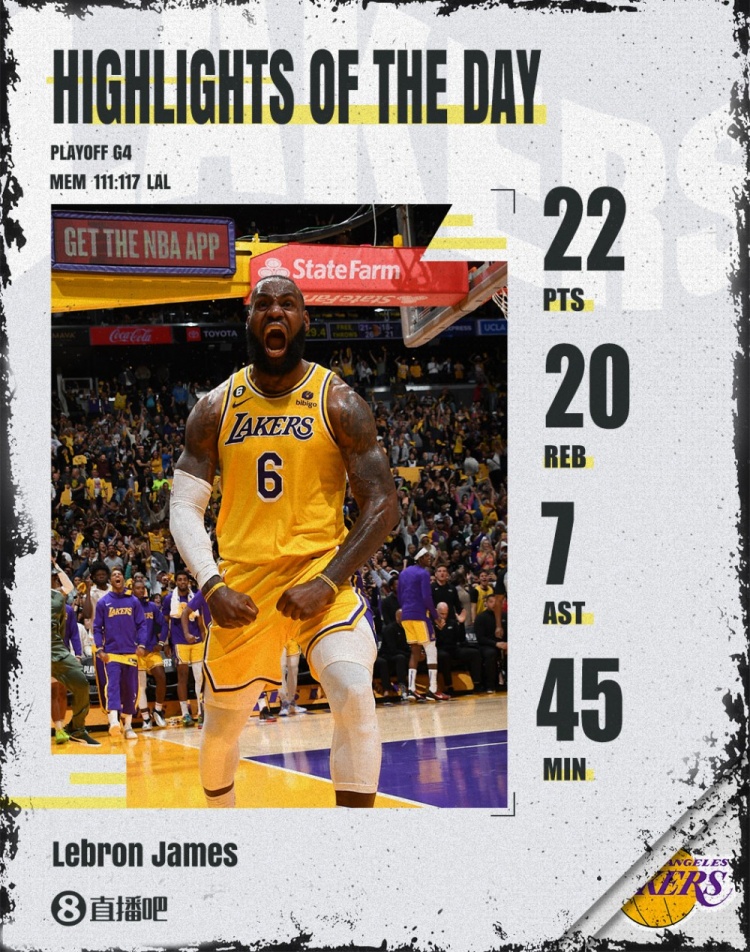 NBA季后赛首轮G4,湖人主场加时117-111逆转灰熊,将大比分扩大为3-1。