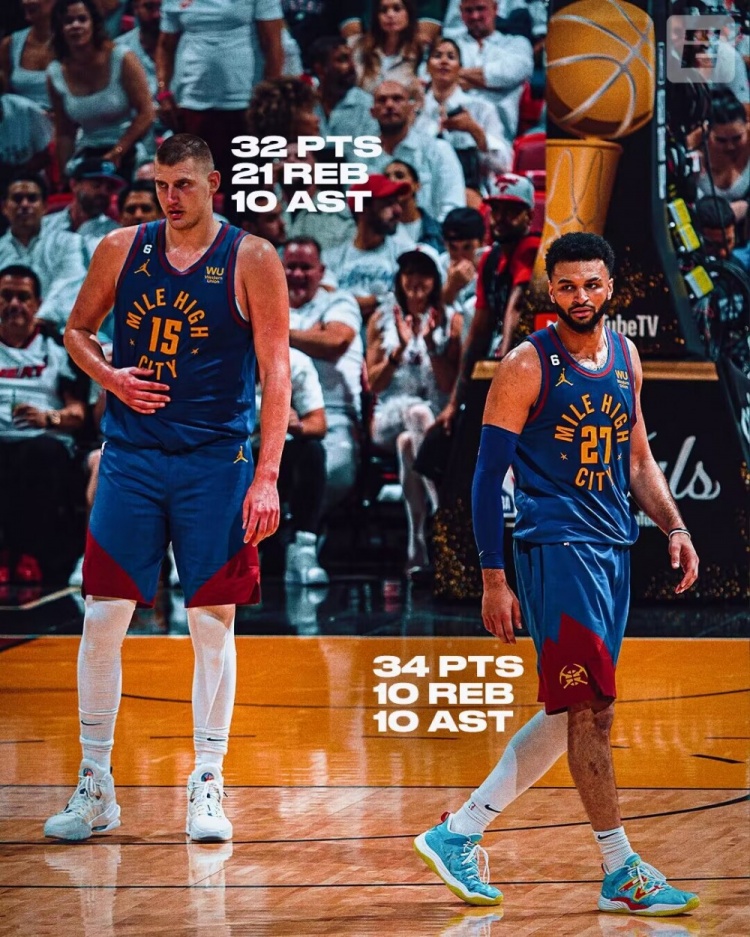 其中在总决赛G3中,约基奇狂轰30分20篮板10助攻超级三双,总决赛历史首人!